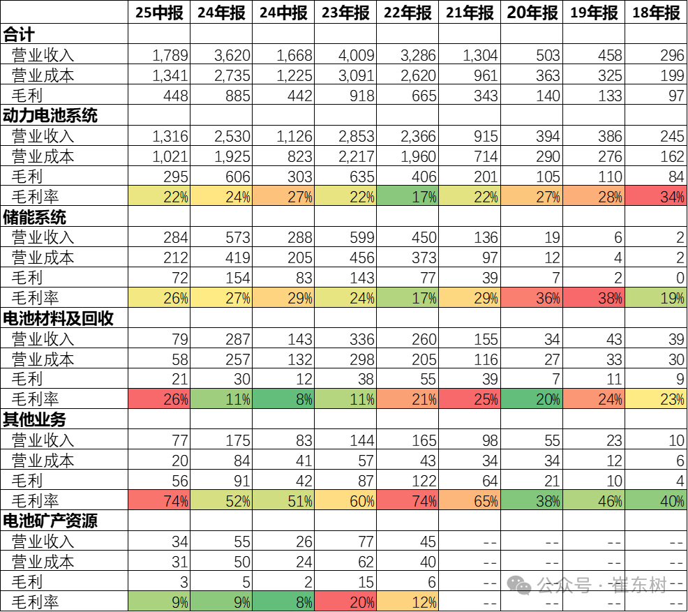 目前宁德时代的电池回收规模还不大,电池回收毛利属于相对较低的一个状态,今年电池回收的规模下降但盈利改善明显。电池材料和回收估计是合并考虑,因此回收的盈利性较差。