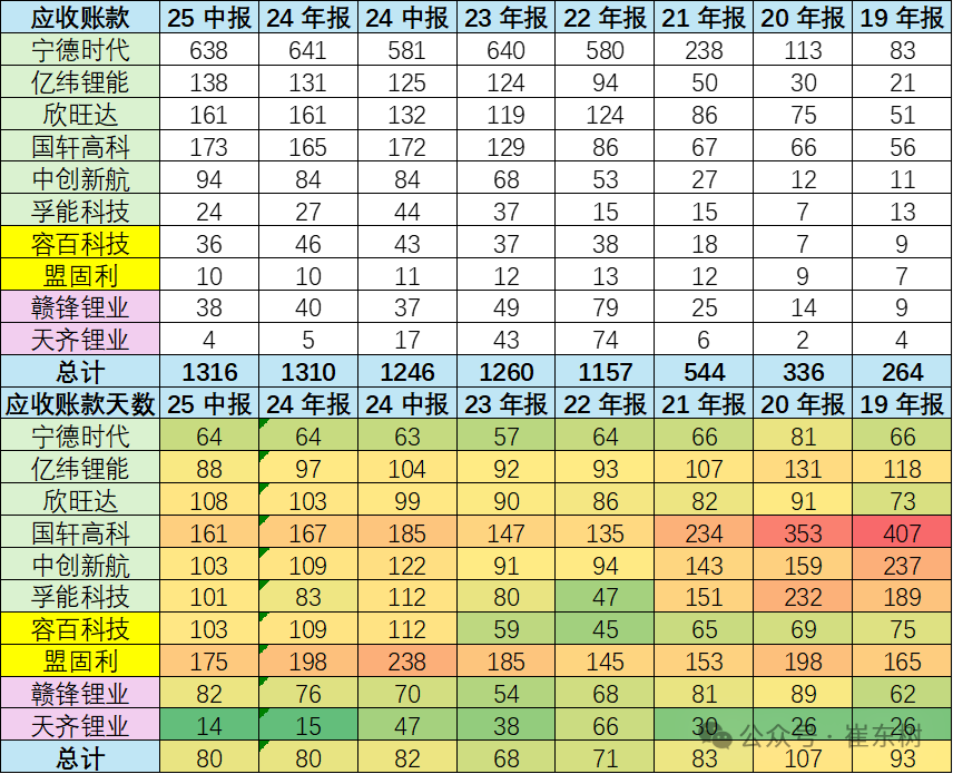 2025年电池行业的应收账款80天,相对2024年同期减少两天。由于电池行业相对强势,反内卷对电池行业有利。国轩高科(002074.SZ)、中创新航(03931)、亿纬锂能(300014.SZ)的应收账款时间都有改善。